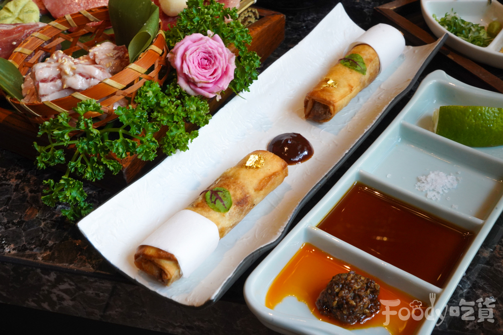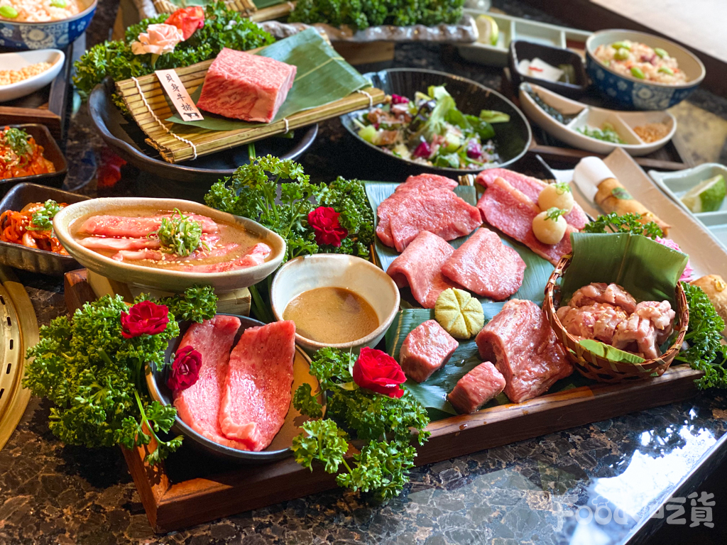 餐點內容:主廚沙拉、和牛炸春捲、和牛&伊比利豬八種拼盤 ( 澳洲冷藏牛舌、日澳和牛紛雪燒、上等牛五花、烤肉醬牛五花、和牛角切、日本和牛姿切、伊比利、肋眼上蓋、伊比利豬肋條 )、日本A5和牛牛排、海鮮雙拼 ( 大蝦、北海道生食級干貝 )、自家製泡菜、季節炊飯、80元飲料2杯、季節甜點