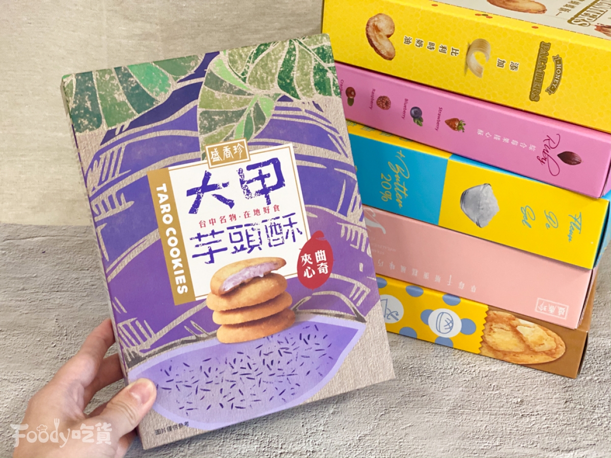 ▼「盛香珍大甲芋頭酥夾心曲奇 $79」使用紐西蘭奶油及白巧克力,內餡使用大甲芋頭,香醇濃郁!