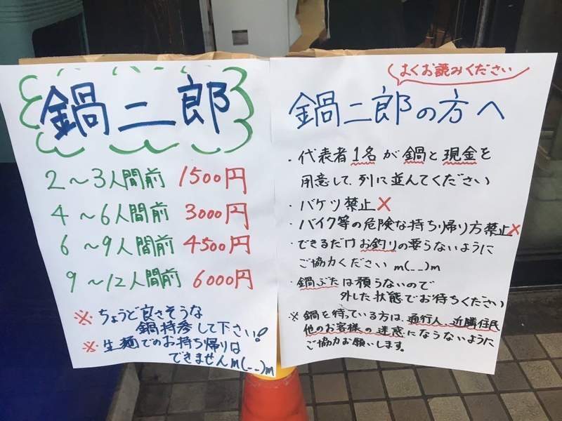 ▼這段期間,「拉麵二郎」在座位間加裝隔板保證顧客的安全,同時很多分店還推出了外帶服務。要知道拉麵的烹飪時間很重要,「拉麵二郎」提供的「鍋二郎」外帶服務,就是要顧客自己帶鍋子去店裡,店員會將食材裝進鍋子裡讓顧客帶回去。