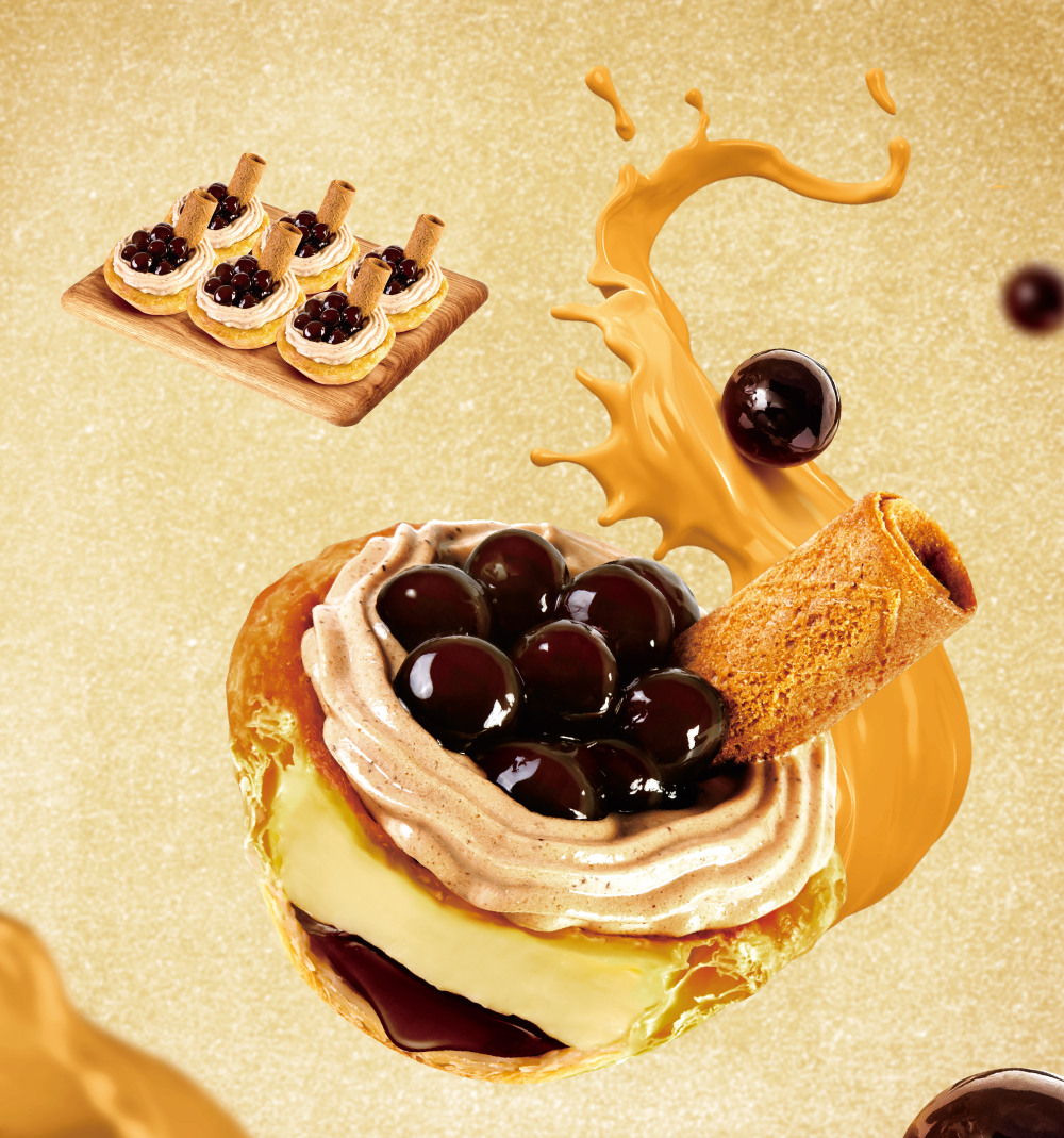▼這次黑糖珍奶蛋撻,不僅有經典手作163層酥脆撻皮及葡式奶蛋餡,完美融和濃醇黑糖漿,上層點綴一圈斯里蘭卡錫蘭紅茶調製的奶茶卡士達,並放上晶瑩剔透的波霸珍珠,最後可以自行插上香酥可口的脆餅吸管,幸福又療癒的創意新吃法,就是要搶佔社群美拍的版面。