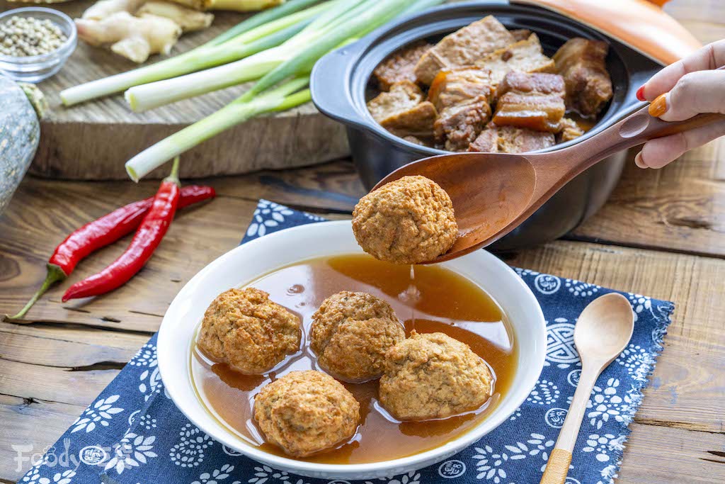 ▼飽滿又Juicy的獅子頭充滿豬肉本身的肉香鮮甜,跟醬汁一起淋在麵上,馬上又是一道讓人「凍未條」的美食熱騰騰上桌;而獅子頭也叫做「四喜丸子」,象徵福、祿、壽、喜的好彩頭,在這個非常時期,肯定能一次擄獲長輩們的心跟胃!