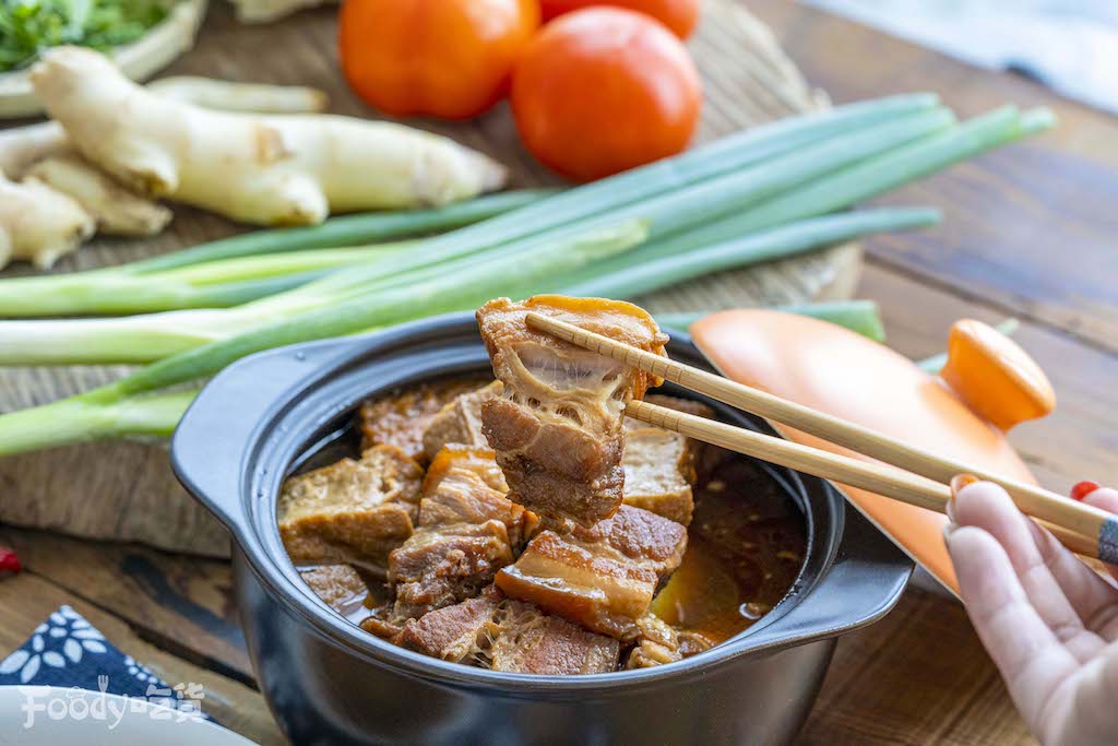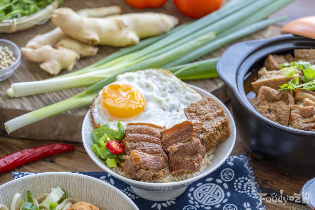 ▼選用台菜不敗經典五花肉,以小火持續燜煮,肥瘦適中的紅燒肉用筷子一夾就快散開,滷得軟嫩又同時保有Q彈嚼勁,搭配台式滷肉必備的經典油豆腐「阿給」,香滑口感與Q彈肉感交織,讓人大滿足!