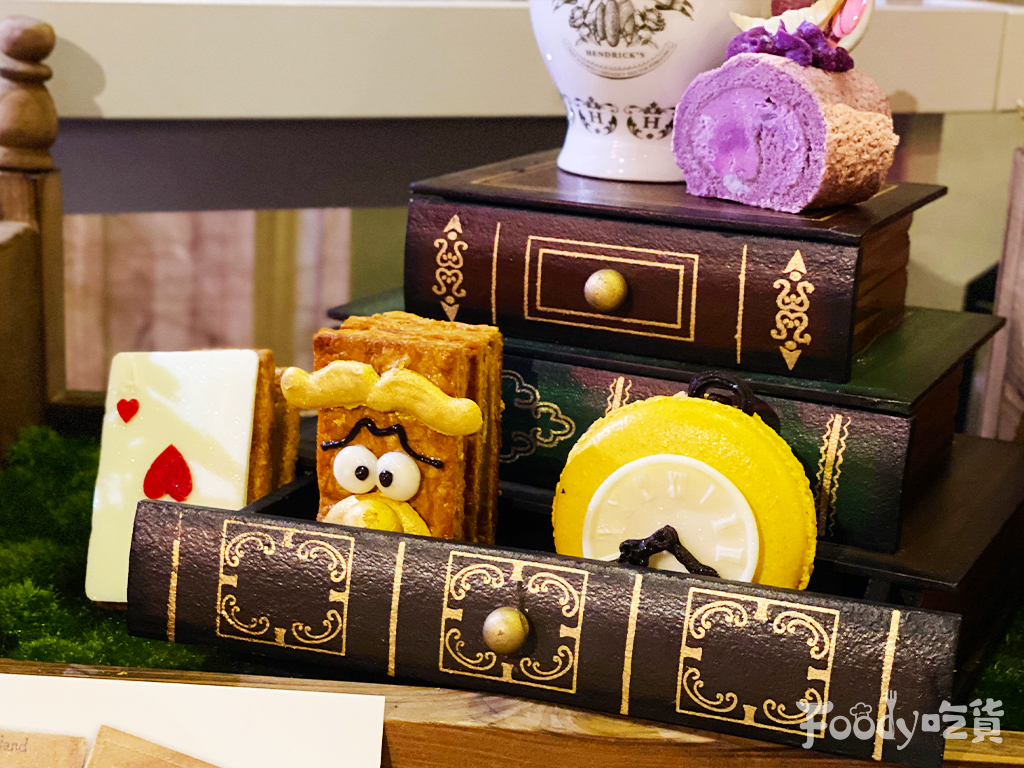 ▼另外還有像是「白柚冰淇淋馬卡龍」、「焦糖鹽之花酥餅」,也是這次「瘋帽午茶派對」新品甜點,每個甜點都能看到愛麗絲故事中的經典元素!