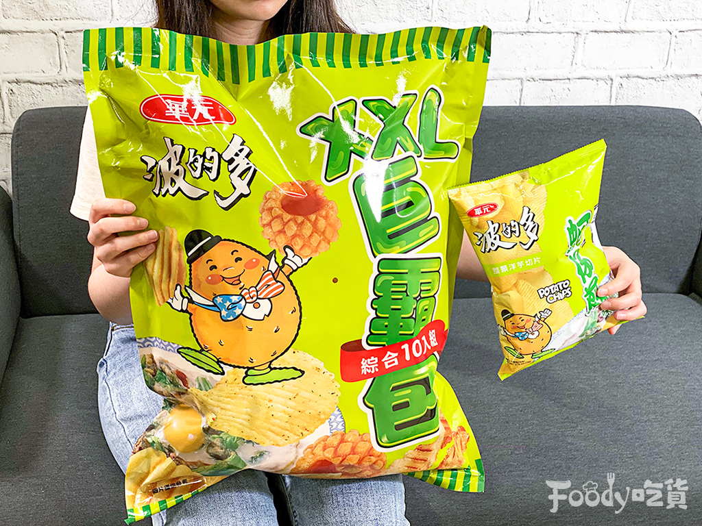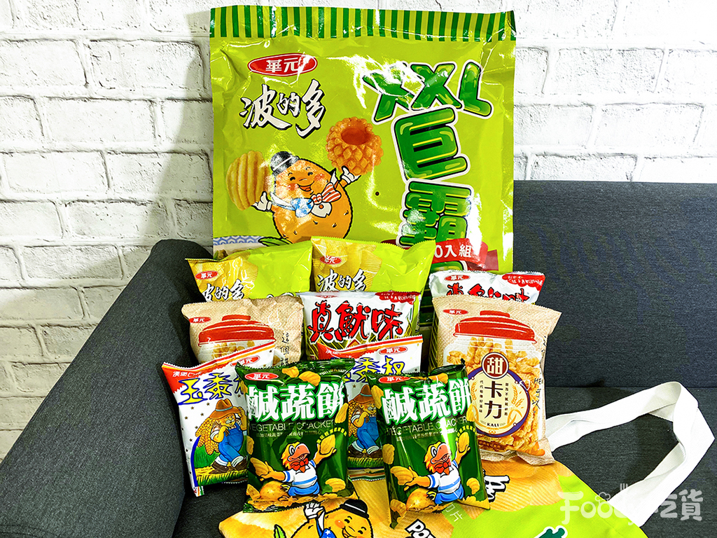 ▼如果你愛吃零食、懶得出門、又有零食選擇障礙者,這款「華元XXL巨霸包」絕對超級適合你,直接將台灣最經典代表零食一次到位,幫你配好各種口味的零食,內含蚵仔煎洋芋片、鹹蔬餅、玉黍叔、真魷味、甜卡力,足足10包餅乾真的有夠彭拜!