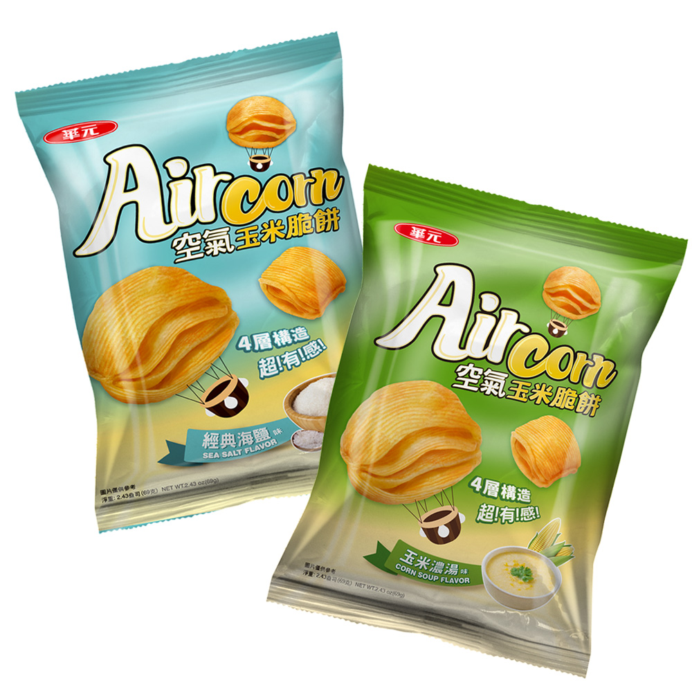 ▼另外,華元也推出了全新的「Air Corn空氣玉米脆餅」,4層空氣層餅體以及輕盈與紮實爽脆的口感,吃起來每一層都~超!有!感!而「Air Corn空氣玉米脆餅」共有經典海鹽和玉米濃湯兩種口味,餅乾控一定要嚐鮮~