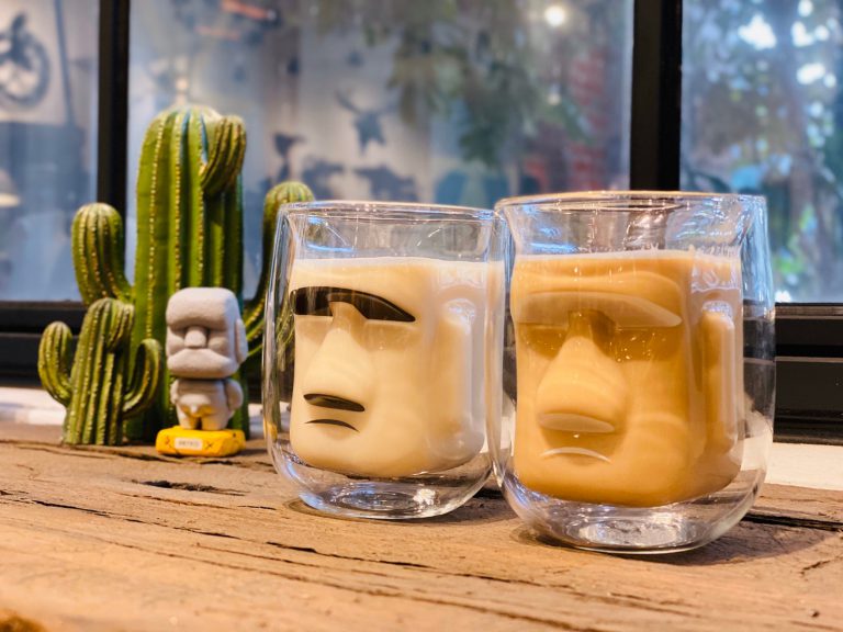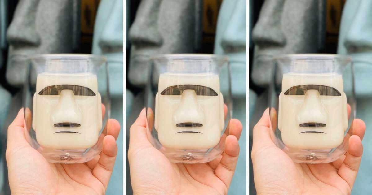 ▼這麼戽斗的杯杯,用來喝飲料絕對是療癒到不行,摩艾呀摩艾,為什麼你大大的臉卻總是能這麼可愛呢?