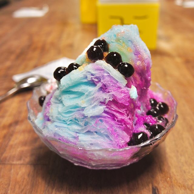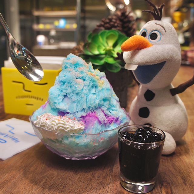 ▼「Ice monster」成名已久,店內除了招牌芒果冰外,還有各種鮮果冰磚製成的綿花冰。這款「獨角獸綿花甜」就是夏季必點,療癒的毛怪配色怎麼能不吃!