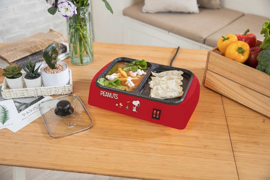 ▼Snoopy煮烤兩用鍋:一鍋就包含火鍋+煎盤+療癒史努比,三種願望一次滿足!