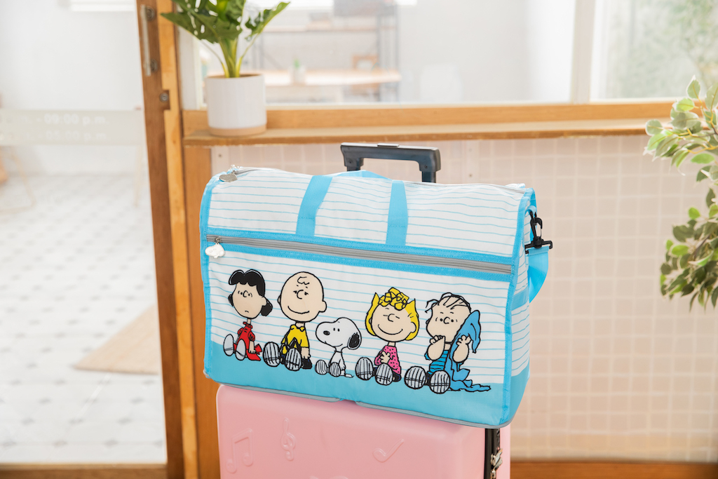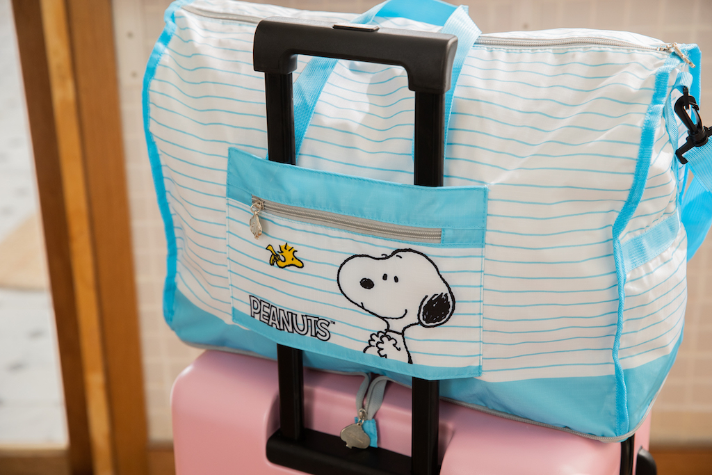 ▼摺疊旅行袋:除了史努比以外,查理布朗等PEANUTS裡的角色都到齊排排站,帶出門最吸睛。