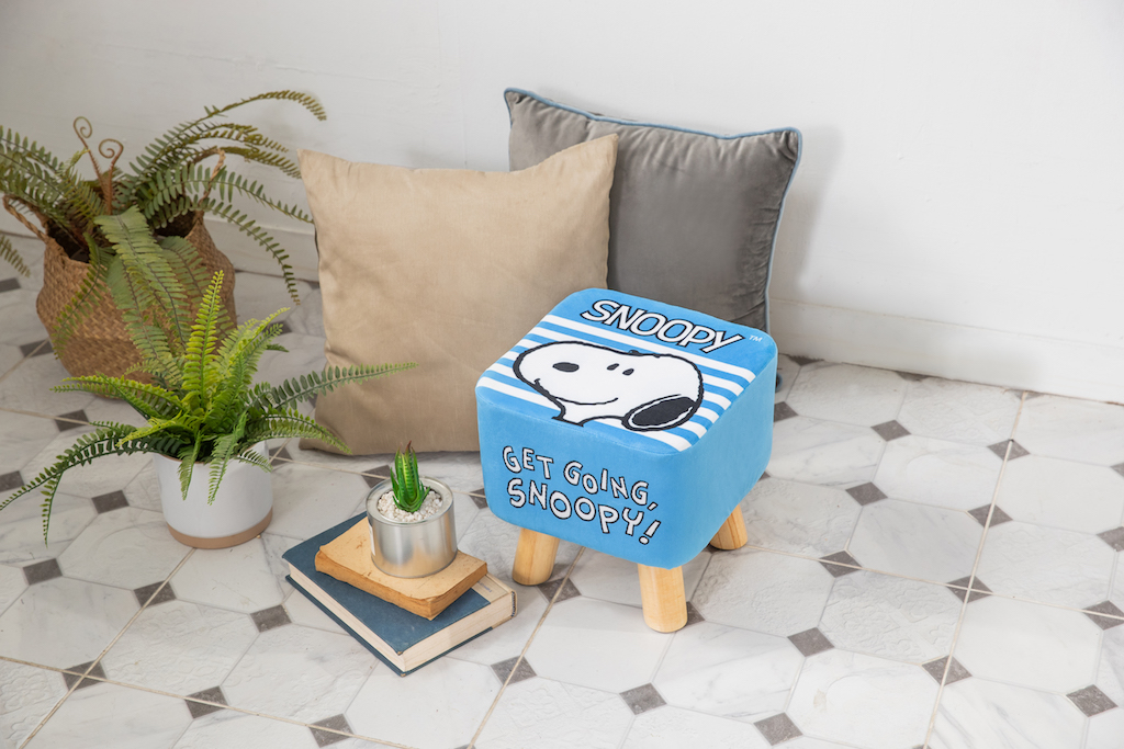 ▼Snoopy來作客小椅凳:舒適椅墊+可拆洗絨布套,日常生活中就有史努比的陪伴!