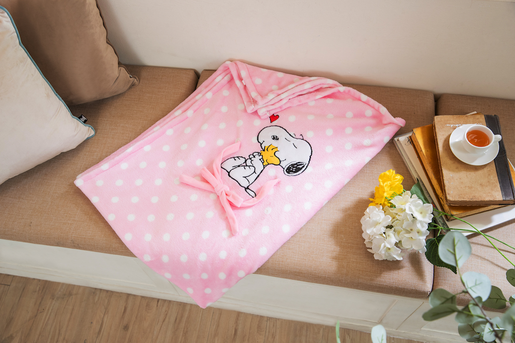 ▼Snoopy粉愛你小被被:粉嫩嫩又輕柔的絨毛被毯,搭配卡哇伊史努比,晚上睏覺最療癒~