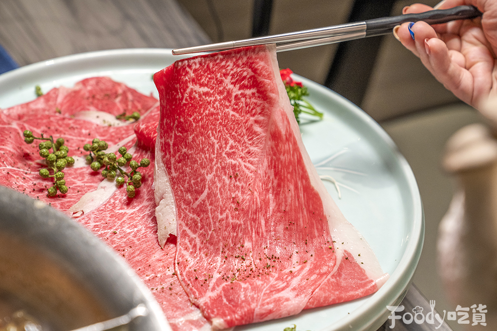 ▼「青花驕」還特別引進來自日本鹿兒島的「頂級A5黑毛和牛(特選/優賞)$1288/$1488」,這款高品質牛肉的肉質與油花相當細緻,鮮甜的口感讓人忍不住一口接一口~而喜愛吃豬肉的饕客們,則可以選「美饌雙豬」,一次將Q彈多汁的國產黑豬梅花、國產帶皮豬五花通通品嚐到!
