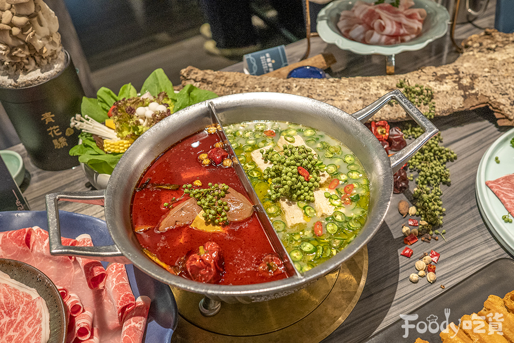 ▼「青麻椒肥牛鍋」一口喝下是香香麻麻的清爽口感,後勁帶點甘甜滋味,同時補足了麻辣鍋在「麻」上的缺口,搭配上刷嘴又夠味「青花椒麻辣鍋」一起享用,無論是在視覺或味蕾上都是全新的饗宴!