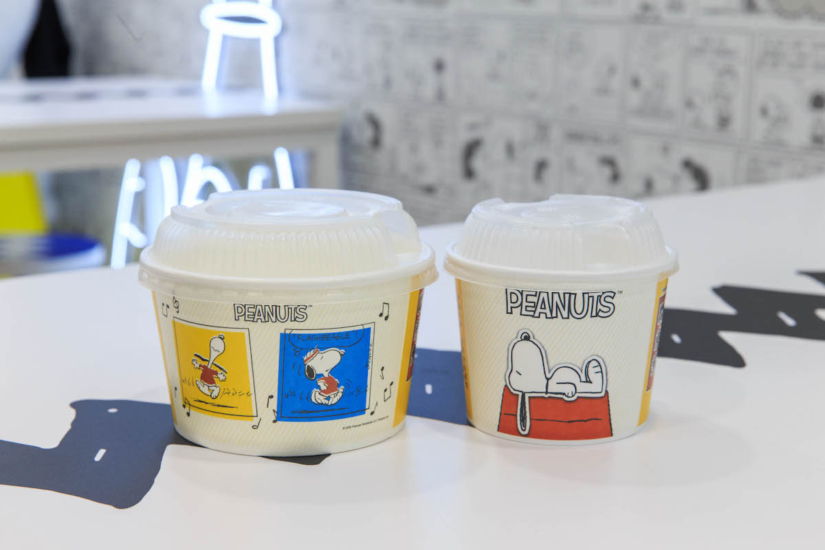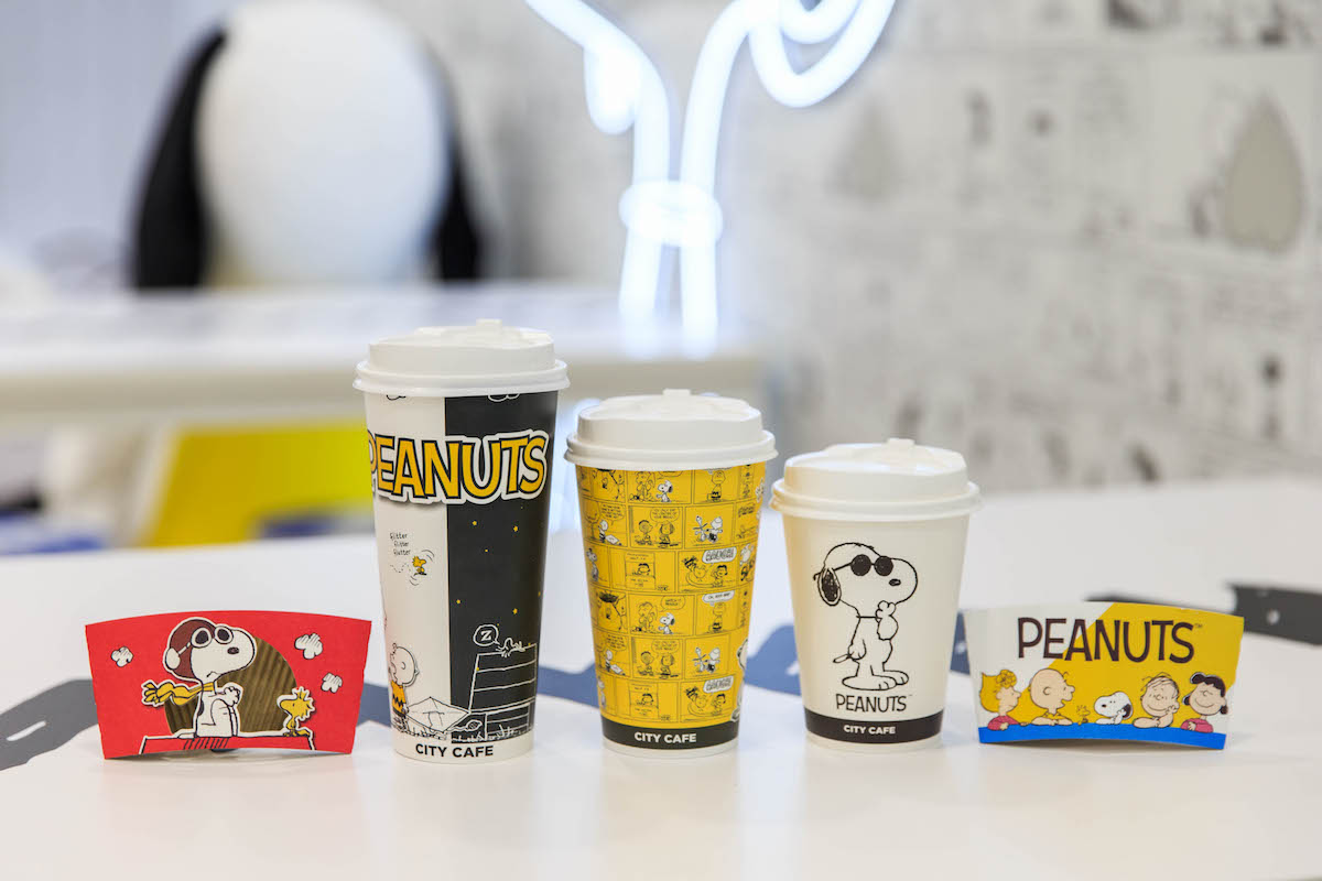 ▼「史努比聯名店」從內至外以美式復古工業風格融合繽紛色彩,將《PEANUTS》歷年來的經典素材融入店舖設計中。咖啡杯、現萃茶杯及關東煮碗,也專為史努比聯名店推出全新專屬設計,每款杯型都有不一樣的史努比,鐵粉們絕對要全套收。