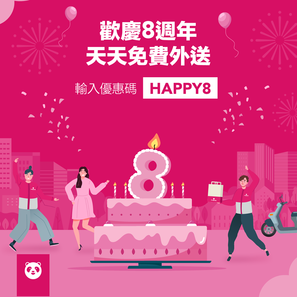 ▼foodpanda在Facebook宣佈,為歡慶8週年,從即日起至6/30天天可享免外送費優惠,只要低消滿150元並輸入折扣碼「HAPPY8」就能使用,真的有狂!