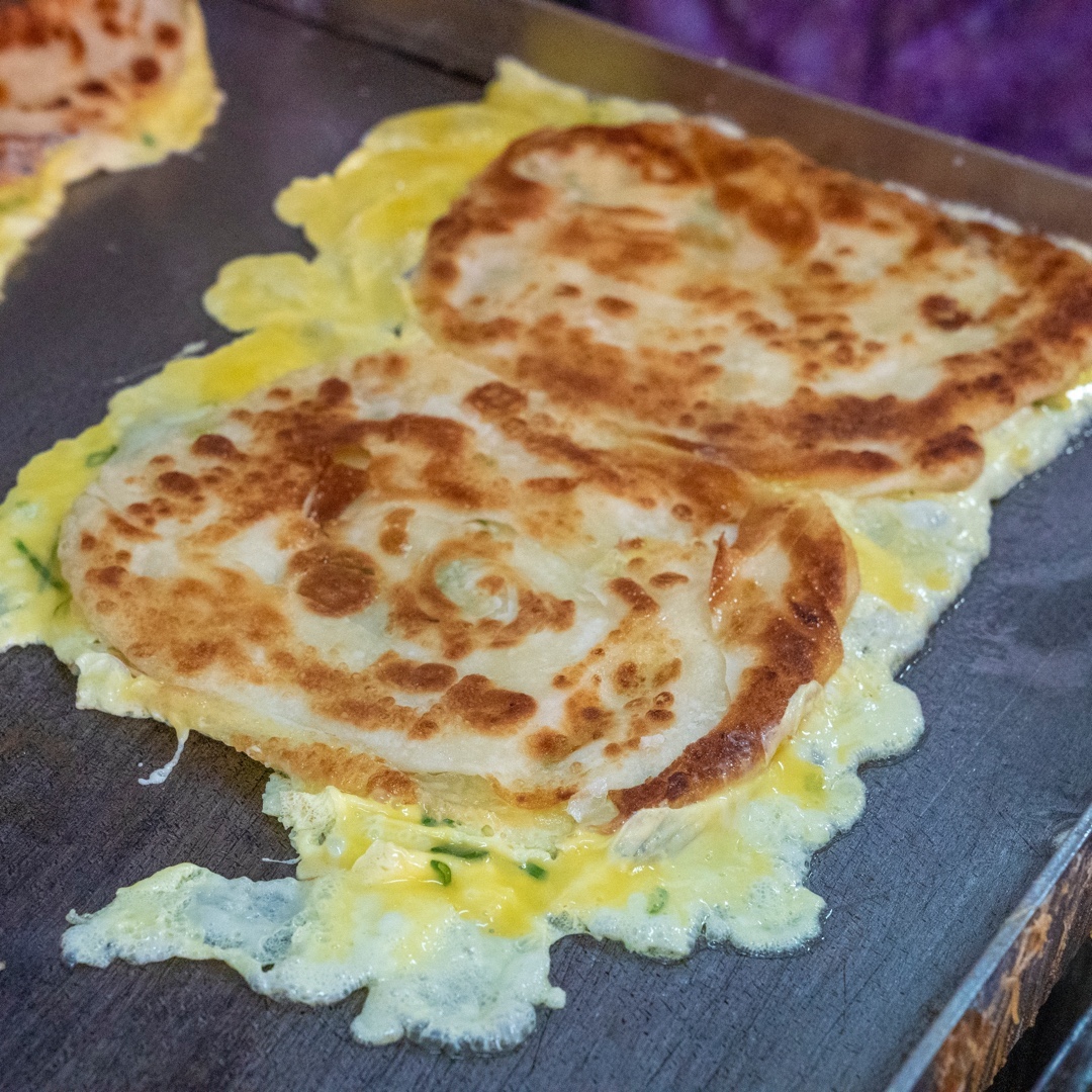 ▼這款蛋餅的酥皮煎的薄脆卻不油膩,餅皮裡夾著充滿香氣的蔥蛋,接著淋上醬油或是豆瓣醬,涮嘴的程度讓人忍不住一口接一口!再搭上一波熱騰騰的豆漿,這早餐組合真的太完美~