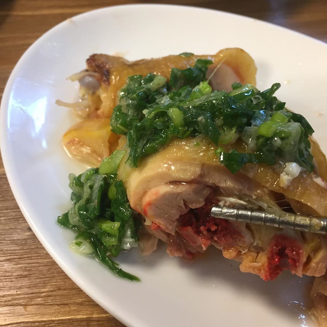 ▼除了雞肉飯必點之外,油蔥雞腿也非常值得嚐鮮,看看這一盤上面鋪滿了滿滿的油蔥,搭配一樣滑嫩的雞腿肉一起享受,幸福就是這麼簡單~