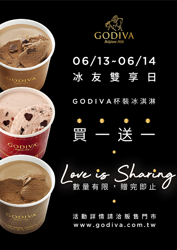 ▼Godiva推出「冰友雙享日」2個方案,只要本週末6/13-6/14期間購買霜淇淋,選擇方案一可獲得霜淇淋兌換券一張(兌換期間6/15-7/15),更加碼回饋憑兌換券可享消費滿300抵50。