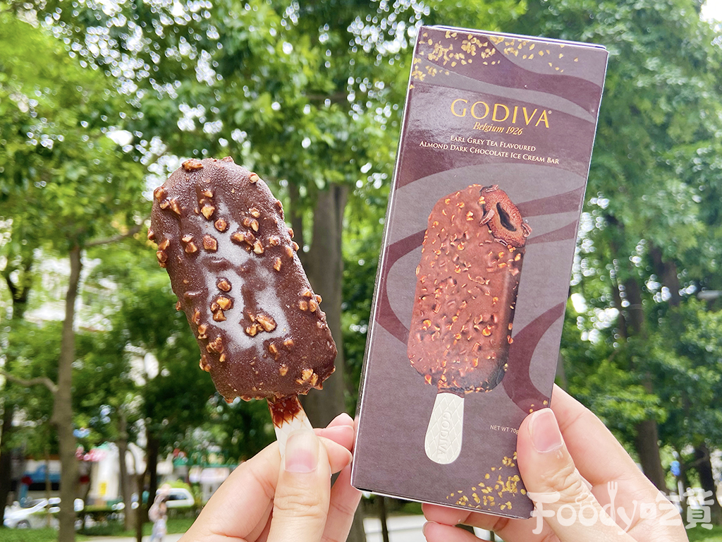 ▼首推英式經典「伯爵茶杏仁黑巧流心雪糕」,GODIVA經典比利時巧克力結合溫馴醇厚茶香,外層杏仁碎與巧克脆片口感搭配中層巧克力與伯爵茶流心餡,濃郁黑巧冰淇淋中透出淡淡佛手柑香氣,四層美味不間斷。