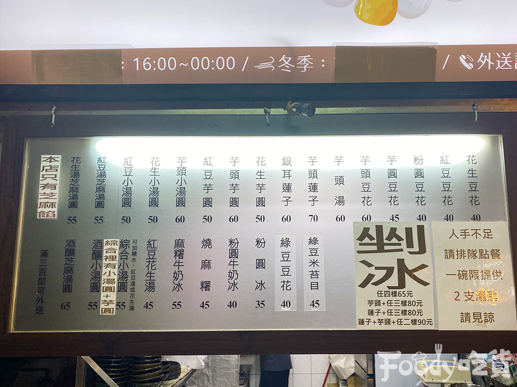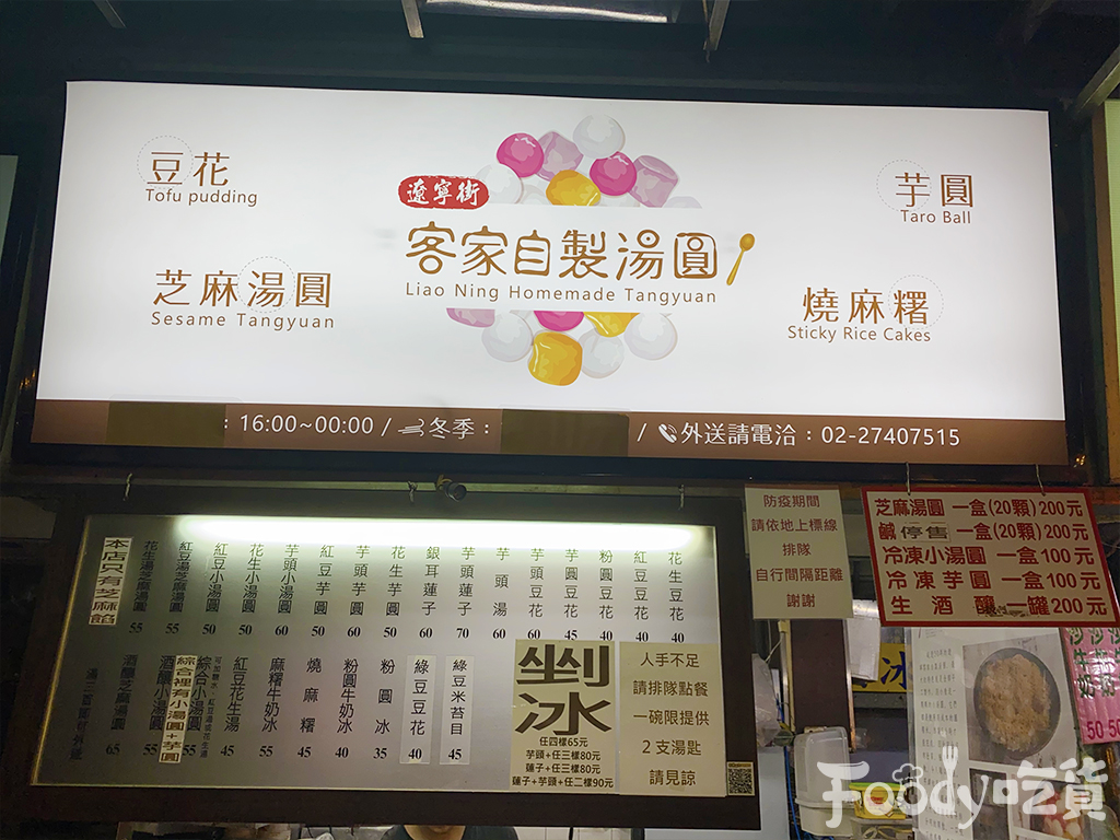 ▼「客家自製湯圓」主要販售豆花、湯圓、芋圓以及燒麻糬等等各式冰品,來逛夜市吃完鹹食之後,來這裡吃一碗湯圓,當作飯後甜點最適合了!