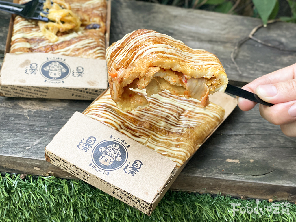 ▼而無辣不歡的朋友們則可以選擇這款「歐爸泡菜花賊燒$60」,日式Q軟餅皮配上酸酸辣辣的泡菜居然那麼搭,超涮嘴的滋味不知不覺就嗑完一份了呢!