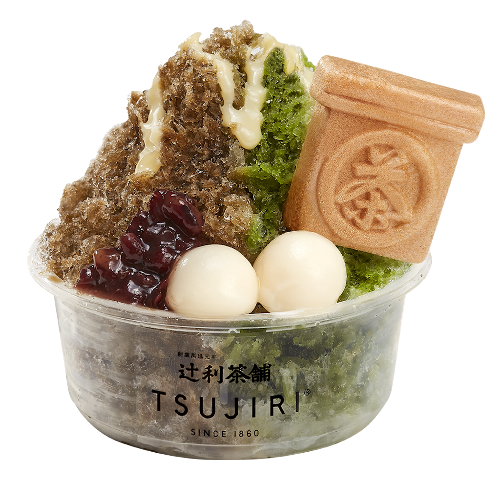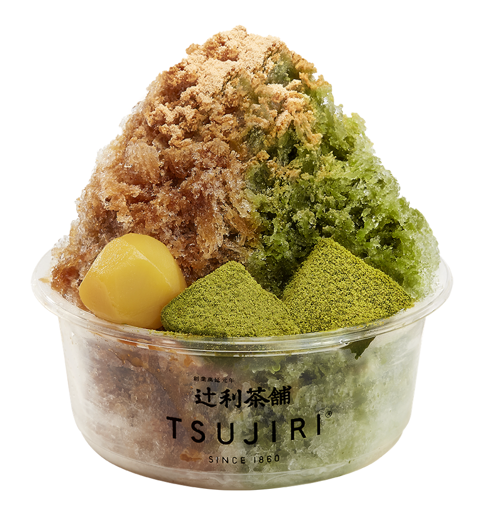 ▼以日本道地風情呈現。「辻利招牌雙茶刨冰」(售價135元)將抹茶的醇厚茶香與焙茶的焙煎香氣製作成茶蜜,大量淋上清爽刨冰,不同製法的茶品揉合出新的火花,請感受日本茶中的奧祕。