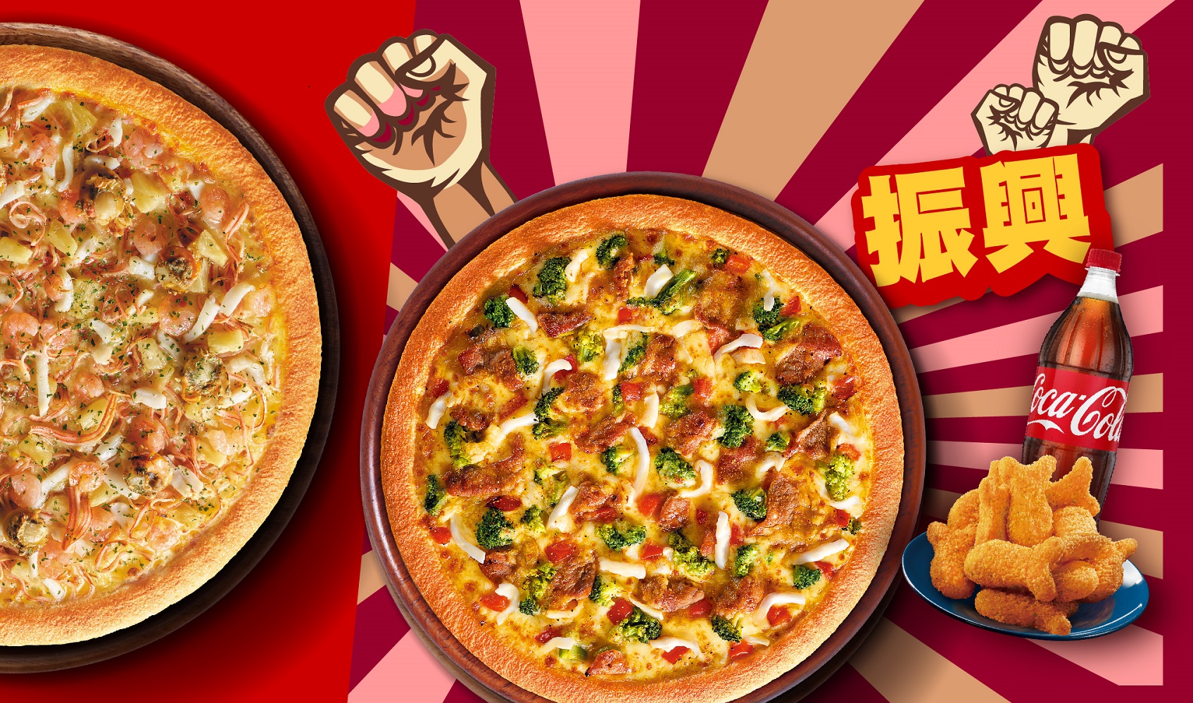 ▼另外,必勝客還祭出澎湃「振興一送三」豪華/經典 兩種套餐,其中「豪華套餐」購買指定豪華口味大比薩,即贈外帶大比薩或外送小比薩、10塊黃金和風鱈魚塊,及1.25L可口可樂;「經典套餐」購買指定口味之大比薩,即贈BBQ口味厚燒醬烤(2腿2排)、薯星星20顆,以及1.25L可口可樂1瓶。6月23日起到7月13日,吃好吃滿就趁現在!