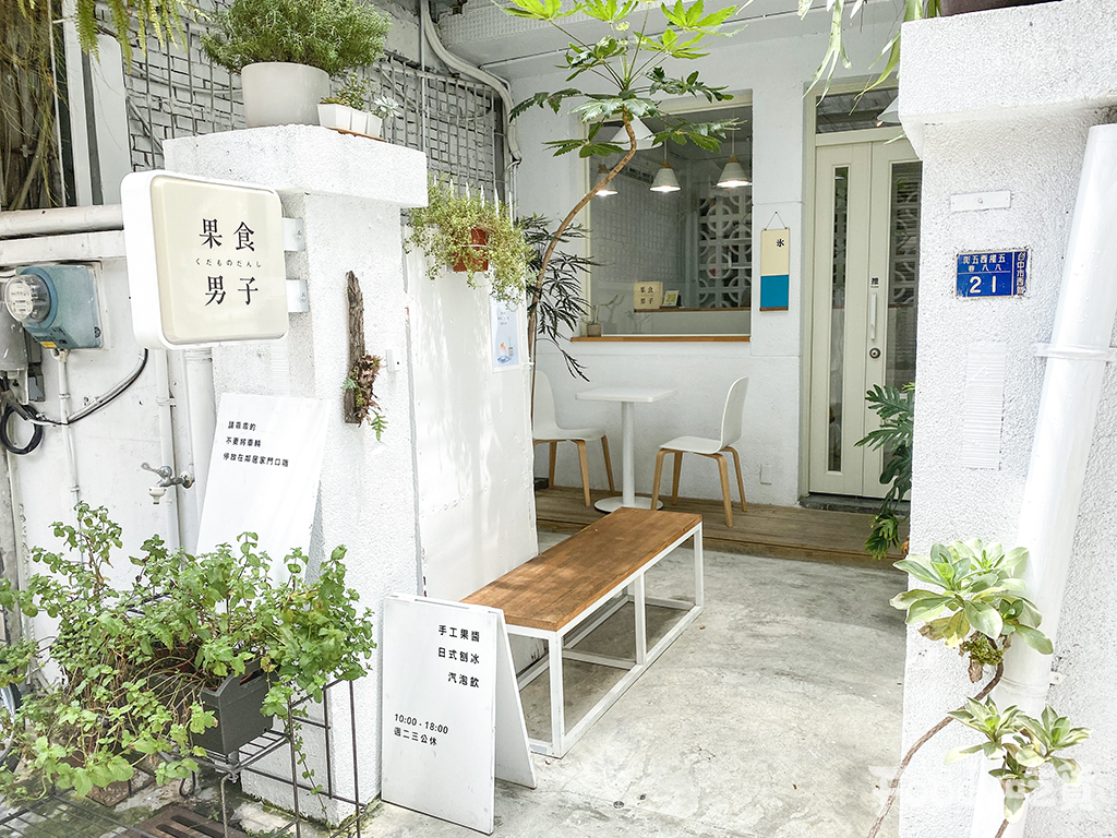 ▼「果食男子」以純白色的日式老宅建築為設計,還有許多綠色植物進行點綴,讓人覺得相當放鬆又舒服!一走進店裡還有可愛的店貓與店狗等著迎接客人們,真的五告勾錐啦!