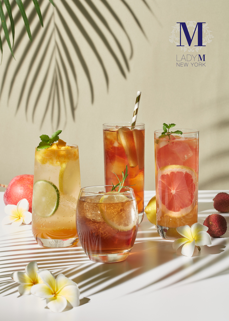 ▼除了夏日消暑甜點回歸之外,Lady M也推出四款消暑系飲品,以島嶼夏日水果為主題,分別是「蘋果荔枝冰茶」(180元)、「黑糖檸檬氣泡飲」(160元)、「鮮柚冰茶」(180元)、「芒果氣泡飲」(160元,8月上市),清新茶香佐以酸爽的夏季水果,為溽暑熱氣注入一股清涼感!