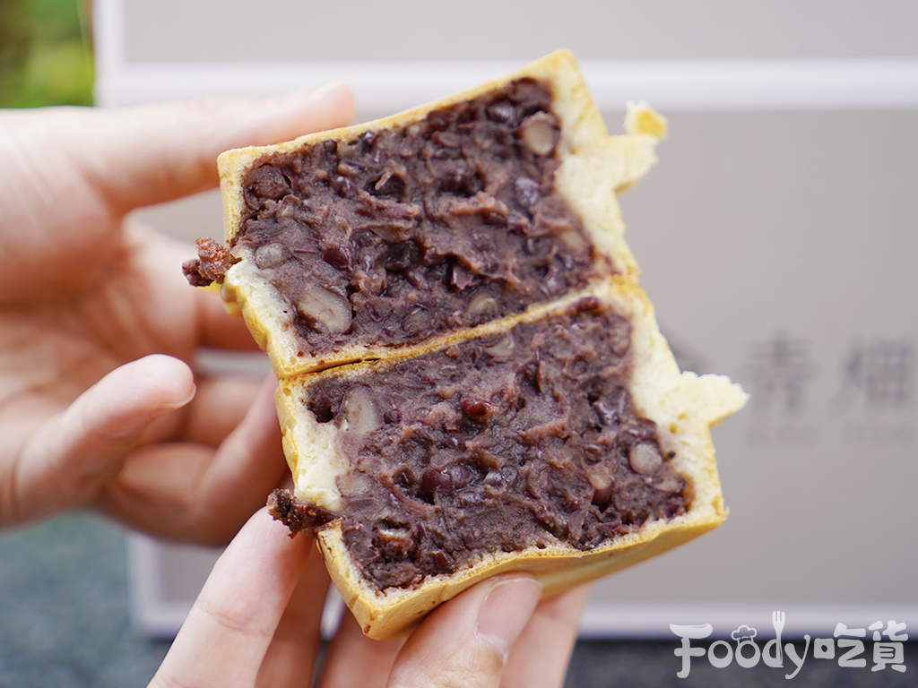 ▼首先是車輪餅的經典口味-紅豆,不過青畑九號的紅豆口味可不是一般的紅豆口味,而是「巨無霸紅豆燒」(35元),看看這塞得密不透風,還能看到顆粒的紅豆餡,會害怕密集的人可能看了都會嚇一跳吧XD。