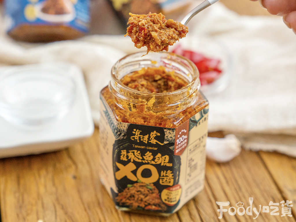 ▼海濤客另一款「頂級飛魚卵XO醬」,也是一吃就忍不住狂挖了半罐;飛魚卵產量稀少,每年只有5-7月才能捕到,這款XO醬卻奢侈地加入大量被譽為「海上黃金」的飛魚卵,再加入手工挑選的、新鮮干貝小火慢炒而成、食材新鮮不腥,不含防腐劑的手炒美味,真材實料吃起來大滿足。