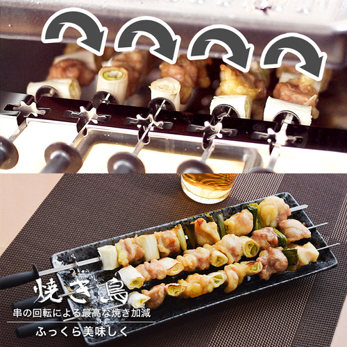 ▼下方的自動旋轉串烤台可以單獨使用,也可以跟上方的烤盤同時用來烤蔥鹽雞肉串。