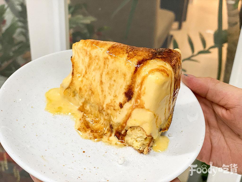 ▼「烤焦糖乳酪雙重奏」炙燒過後的焦糖吃起來香脆香脆,配上底層香濃的巴斯克乳酪蛋糕和上層口感綿密的提拉米酥慕斯撒上砂糖後炙燒成焦糖,整體吃起來濃郁又有層次感,讓人忍不住一口接一口!