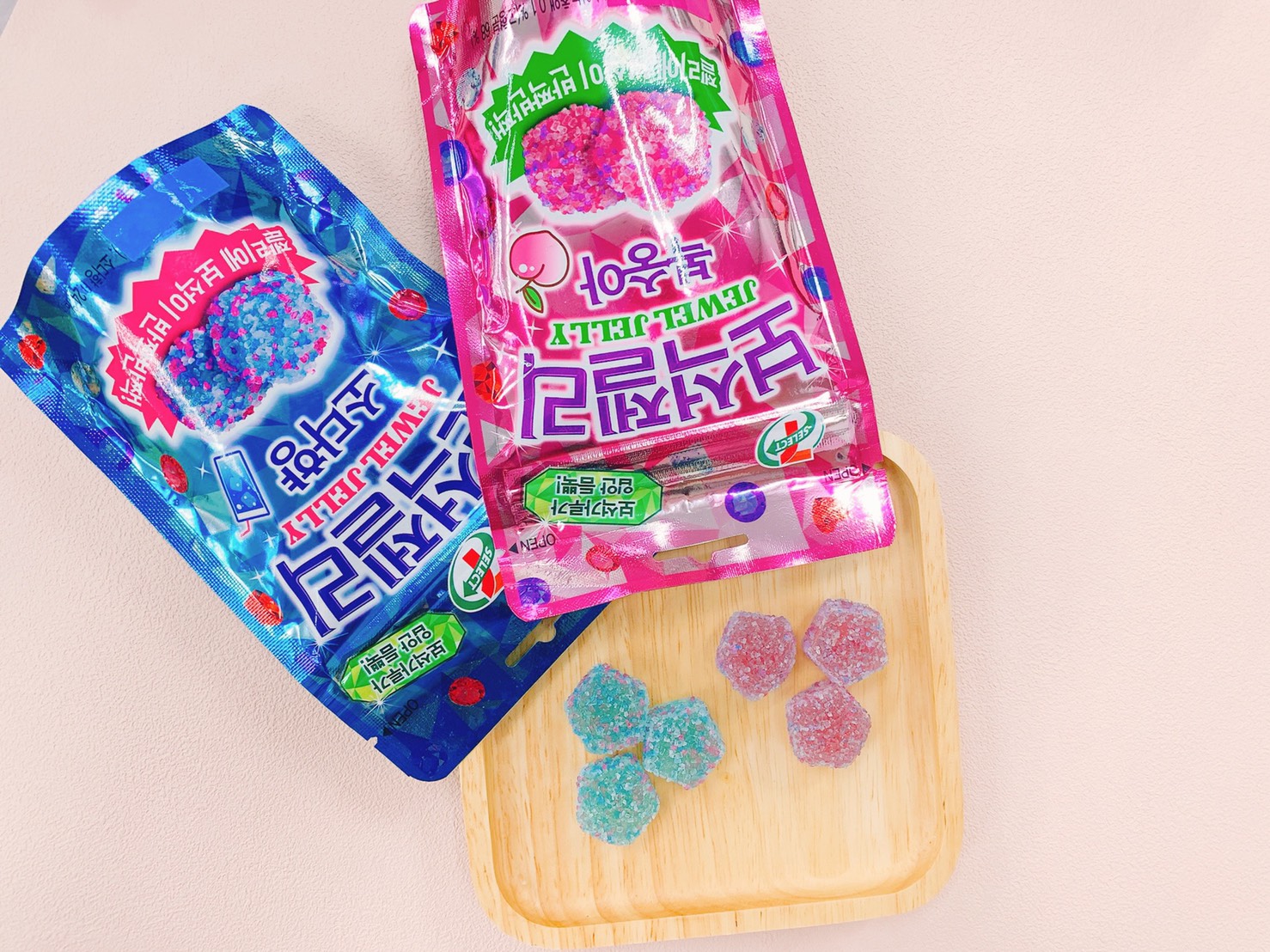 ▼韓國7-SELECT寶石軟糖在韓國IG擁有高人氣,軟糖糖粉宛如寶石閃爍般耀眼,共有蜜桃和蘇打兩種風味!