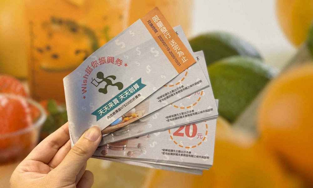 ▼此外,Mr.Wish也同步推出「挺你振興券」活動,7/15-8/31凡至門市消費滿200元就送200元優惠券,組合多達10幾款,除了現金優惠好康,更有超人氣飲品「金鑽鳳梨青、野莓纖果子」等組合可選擇,快揪人一起喝!