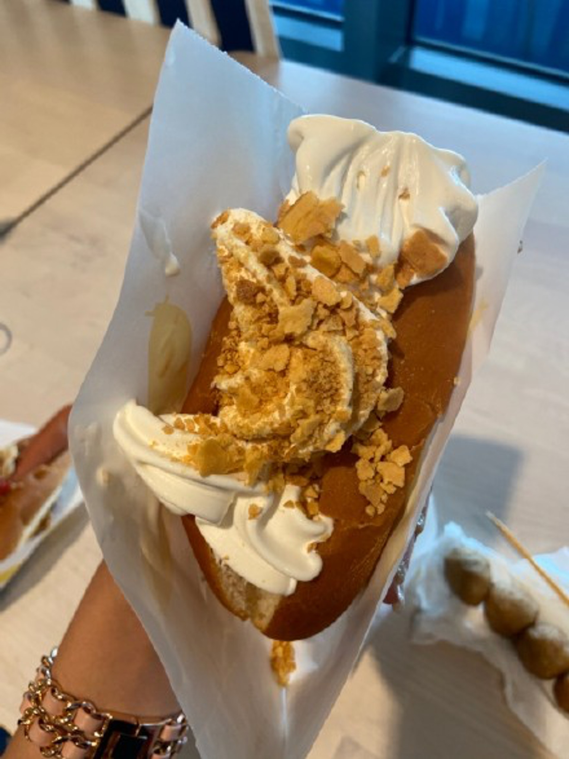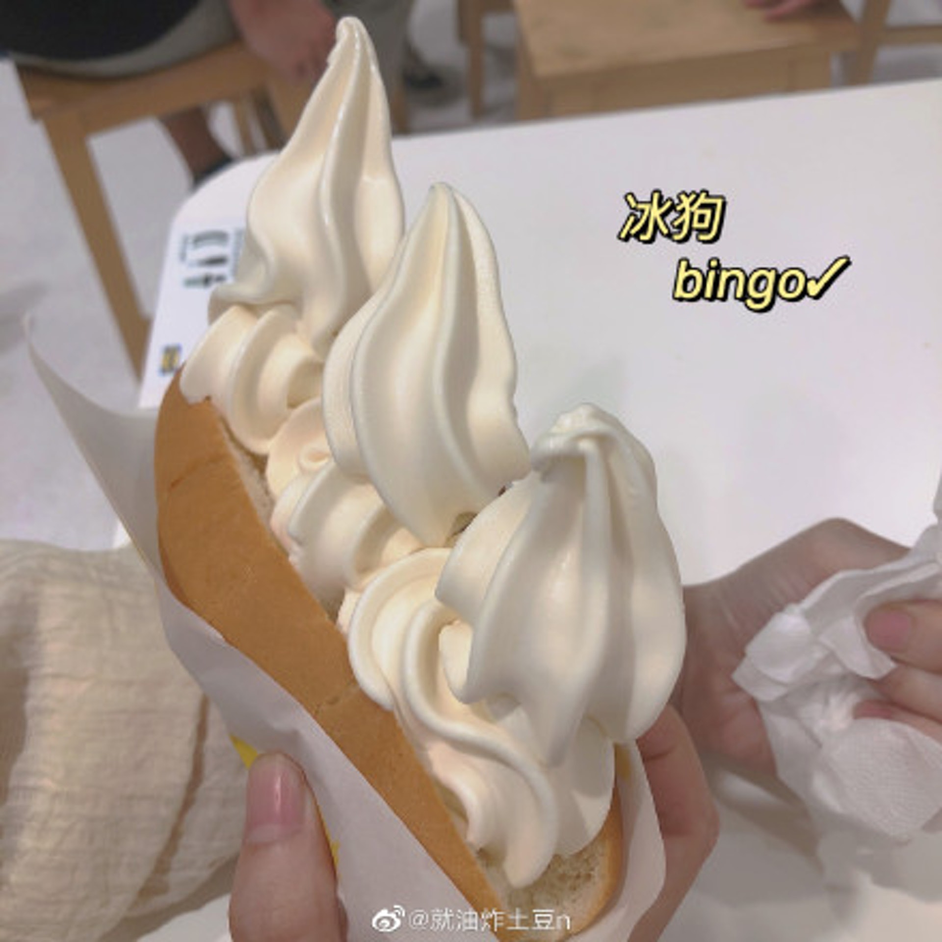 ▼「冰狗」吃起來是什麼味道呢?有試吃過的網友說:「冰淇淋夾在熱騰騰的麵包裡,口感相當特別」、「麵包裡的冰淇淋太多了,我一個月都不想吃冰淇淋了」、「味道還可以,就是吃起來有點不方便,冰淇淋很容易融化沾到手上」。