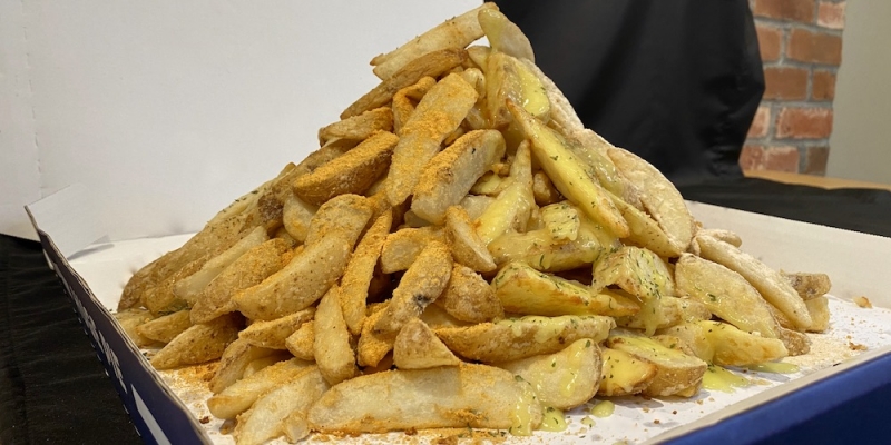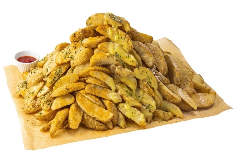 ▼除了披薩,裏菜單中還有重達3公斤的薯條山。薯條山是由4種口味的薯條組成的,分別是原味、法式清湯、蒜辣和奶油味。