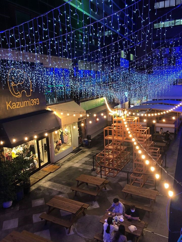 ▼「富地市場」跟「綠美丘」的風格很相似,整整齊齊的木頭攤位、純白色的布簾,很有文青感。市集周邊有很多裝置藝術,上空還掛著浪漫的燈串,不管白天還是晚上都很浪漫,而且非常好拍。