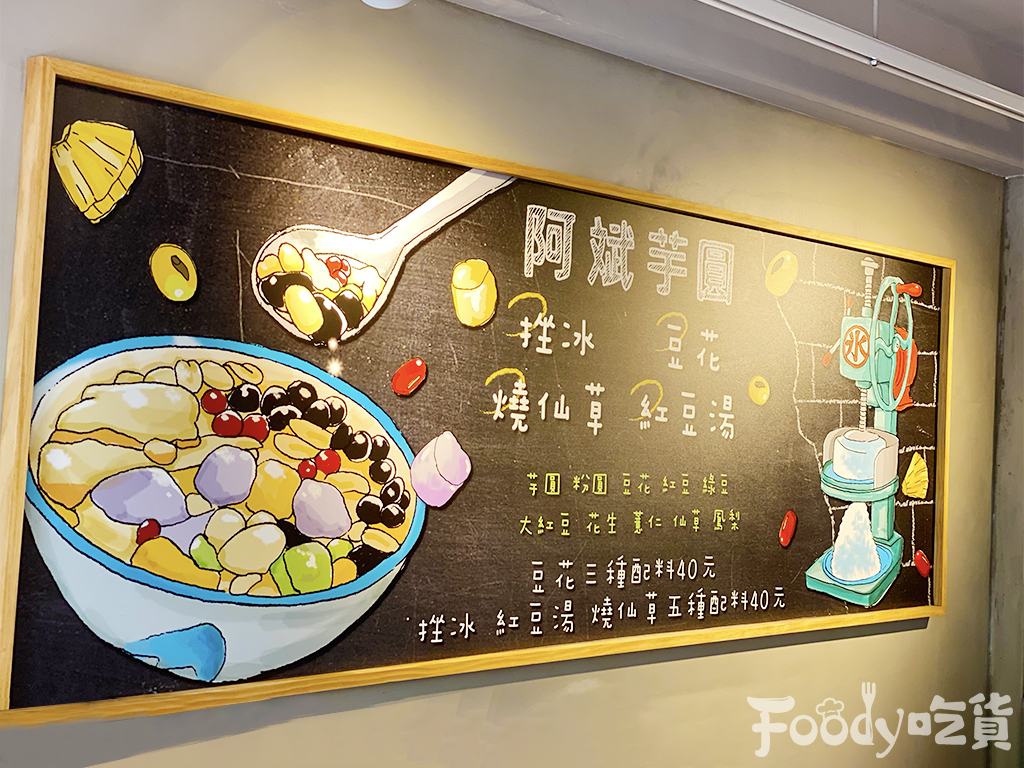 ▼剉冰和豆花基本配料當然不能少,紅豆、珍珠、薏仁、粉粿,想吃什麼料就選什麼料,他們家的芋圓是使用九份排隊名店「賴阿婆芋圓」,吃進嘴裡Q彈的口感,吃過一次就愛上!讓你不用跑到九份,也能吃到美味的芋圓!
