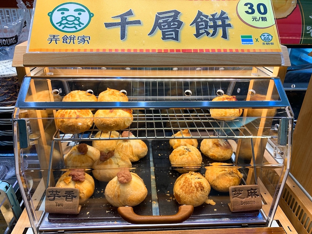 ▼全家特別找來經典中式點心品牌「弄餅家」,聯手推出三款人氣千層餅!以真材實料、獨家純手工作法創造出千層的鬆軟口感為主要特色,經典「鮮肉千層餅」(30元),採用CAS認證合格的豬後腿瘦肉,吃起來不會太油膩,且在嘴裡散發多汁美味;「芋頭千層餅」(30元)則是將芋頭去皮後運用蒸煮的方式,保留住芋頭原有的香氣與鬆軟度,散發出淡淡的甜味;「芝麻千層餅」(30元)使用新鮮黑芝填進美味的餅皮中,內裡飽滿甘醇的香氣和甜味,讓人忍不住多嚐幾口,搭配指定飲料還可享49元超值配。