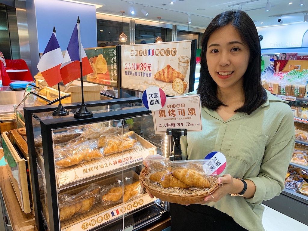 ▼全家便利商店乃於今年初展開法式「現烤可頌」、中式「千層餅」兩款現烤點心的部分店鋪測試販售,主推當日新鮮現烤香味撲鼻,成功擄獲消費者的心。其中,「現烤可頌」開賣首日就創造排隊熱潮,開賣不到三個月銷售超過萬顆成績,更有網友開箱討論敲碗求想吃。