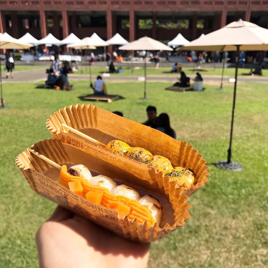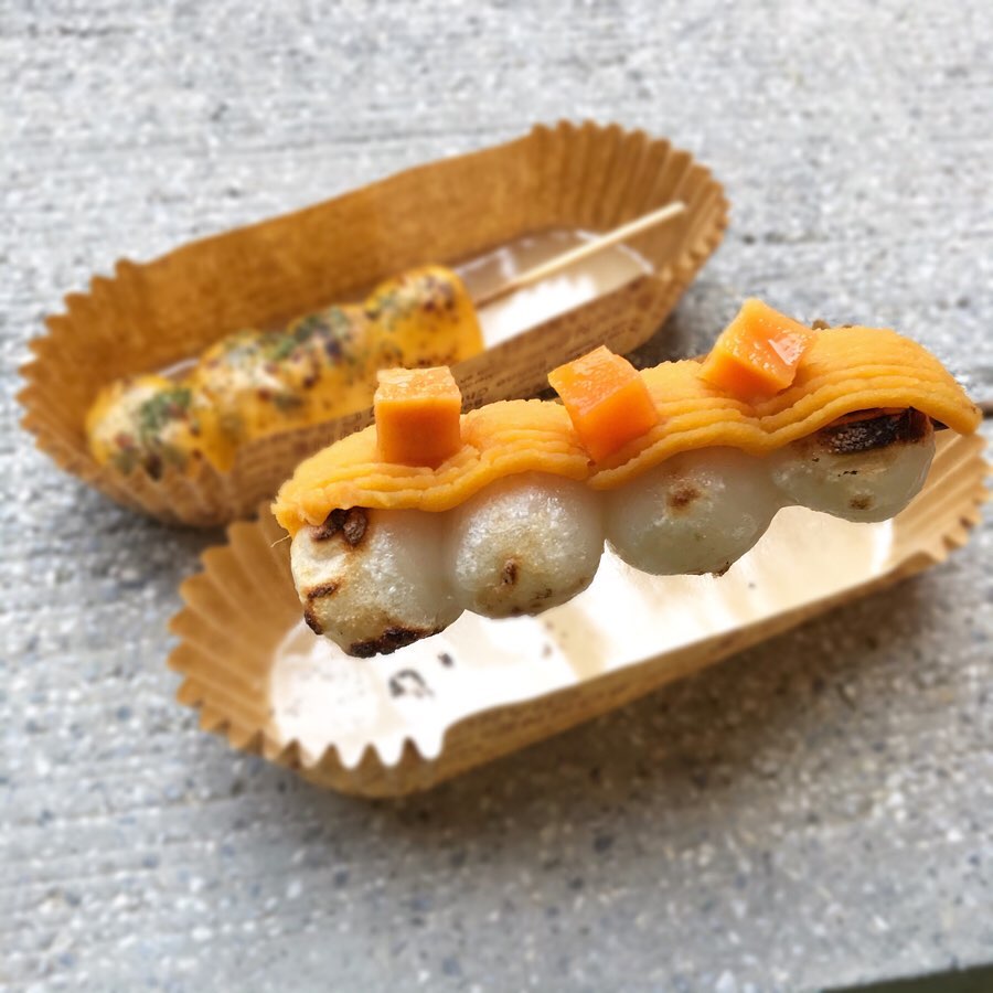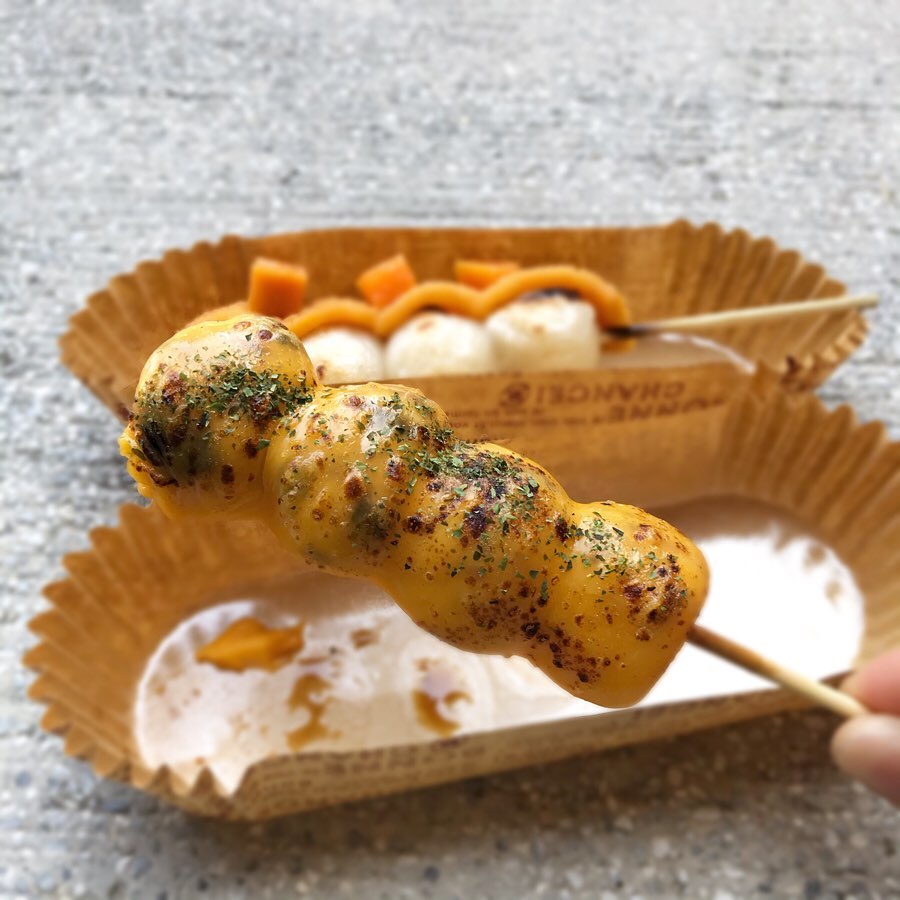 ▼「maru日式糰子」偶爾也會推出限定的口味像是「起司醬油」、「地瓜」等~看看這款「起司醬油」,經過炙烤的起司真的太療癒啦,甜甜的醬油配上鹹香的起司真的非常刷嘴!而地瓜口味除了地瓜泥還有小塊地瓜點綴,一入口是濃厚的地瓜味,甜而不膩的滋味非常適合當散步美食!