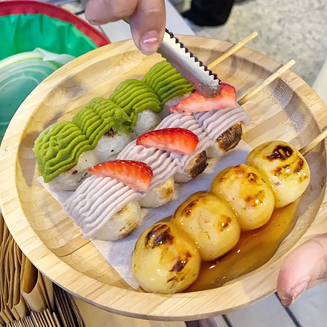 ▼現烤熱呼呼的日式糰子一口咬下糰子是Q軟Q軟的口感,外皮則烤得焦焦脆脆的,實在太欠吃啦!這裡的糰子有多種口味,包含花生、抹茶、芋泥、芝麻、草莓芋頭和甜醬油等~首次嚐鮮的朋友們可以選擇鹹甜必吃的經典甜醬油口味,品嚐最道地的味蕾~