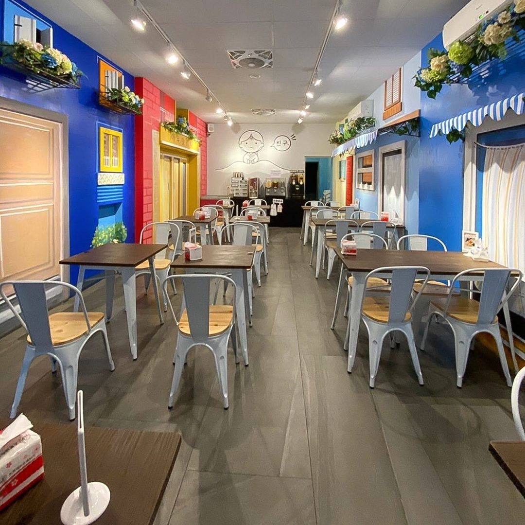 ▼台中豐原南陽路上裝潢非常吸睛的韓式料理「沁咕們」,他們的店名取得很可愛,是韓文「朋友」的諧音,店門口整棟粉色外觀非常少女,餐廳店內裝潢也很不一樣,一般韓式餐廳會在牆上掛滿各個韓星照片,他們家則是把用餐區以立體彩繪創造出有如韓國街道的場景,讓你在這裡用餐有種置身在韓國用餐的錯覺!