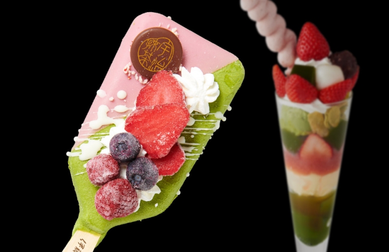 ▼宇治抹茶聖代冰棒:抹茶生巧克力、大福和紅豆餡的完美結合!