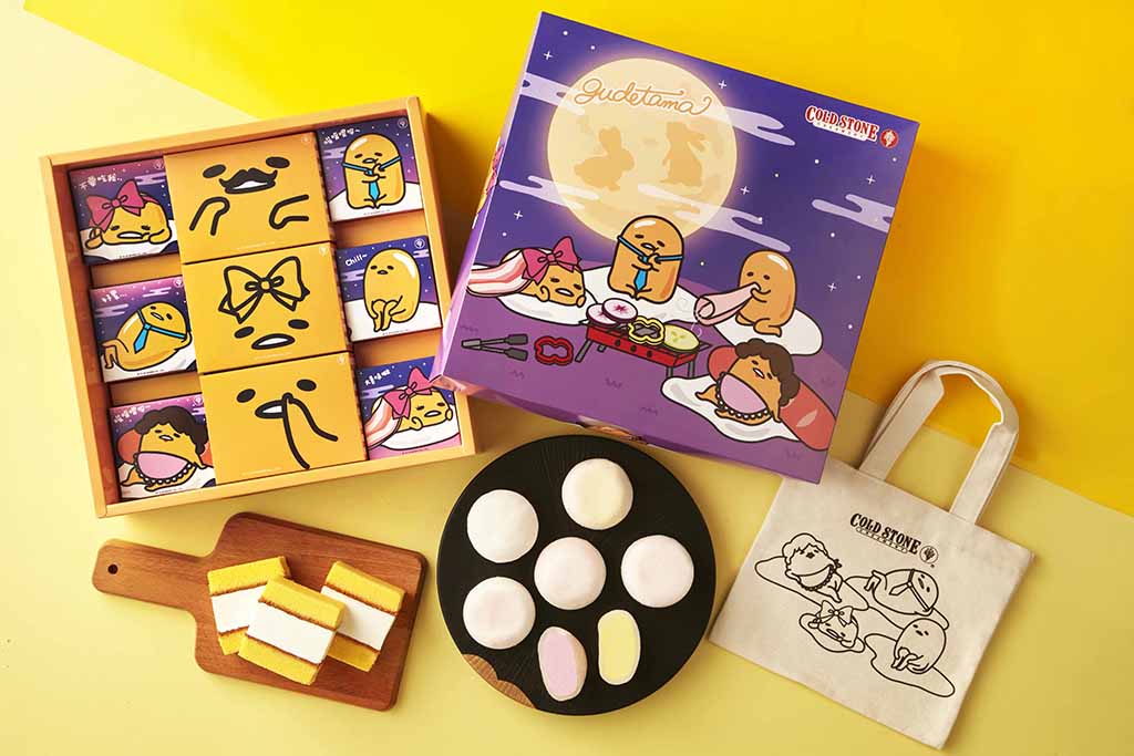▼COLD STONE今年跨界聯名三麗鷗限量「蛋黃哥懶得過中秋禮盒 $1380」,首度力邀蛋黃哥家族,包含蛋黃哥爸爸、媽媽、妹妹及蛋黃哥極致耍萌,以風靡全球『蛋黃哥』的慵懶魅力,完美復刻時下上班族想烤肉又懶得準備的KUSO心理,將超療癒的互動精心設計成限量9款KUSO表情盒,不同特色情境的造型萌力全開,不僅有專屬的超Q限定提盒及提袋,每盒更加碼送「蛋黃哥家族提袋」,超Q的視覺設計,絕對是粉絲必收藏的療癒小物!