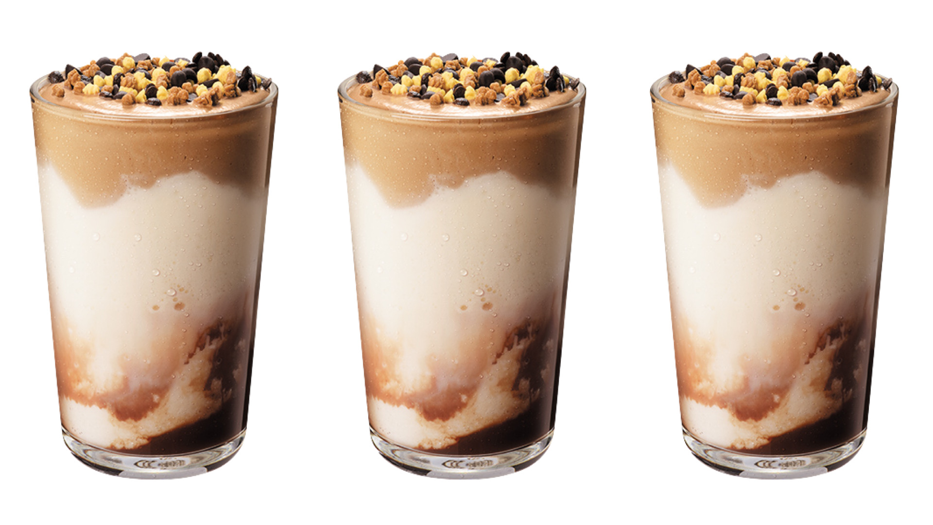 ▼「巧克力香蕉脆餅優格星冰樂」(售價 中杯140元/大杯160元/特大杯180元)經典巧克力香蕉的全新組合。巧克力香蕉優格星冰樂,結合濃郁的摩卡巧克力醬、酸甜清爽帶有香蕉風味的星冰樂,以及綿密蓬鬆的牛奶巧克力泡沫,搭配上方的巧克力餅乾脆餅碎粒,帶來酥脆的口感與吸睛的外觀。