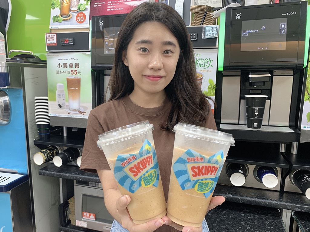 ▼全家便利商店繼去年底限量推出「吉比花生雙醬湯圓」,創下一周完銷的驚人紀錄,今年再瞄準夏季冰飲商機獨家合作開發「吉比花生酷繽沙」,使用吉比柔滑花生醬風味做成酷繽沙,加入慢火炒焙花生,飲用時還可咀嚼到花生顆粒與感受到花生香氣,增添整體香氣!