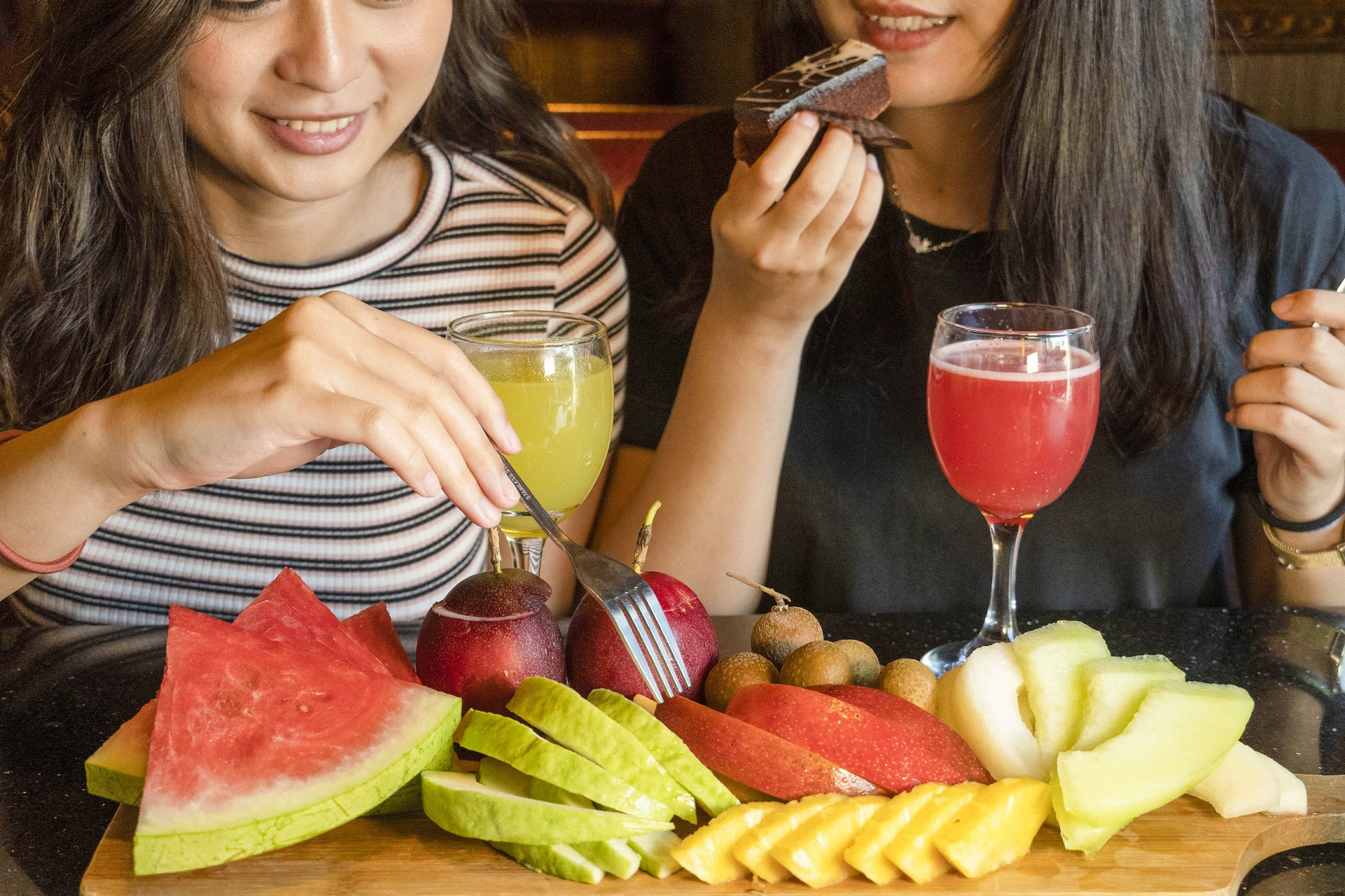 ▼位於西門町的漢口店則提供新鮮現切水果8種及現榨果汁3款,另外當然也有手工蛋糕、蛋塔、奶酪、布丁等甜點,唐寧果茶和UCC咖啡、啤酒等飲料民眾也一樣可以盡情享用。