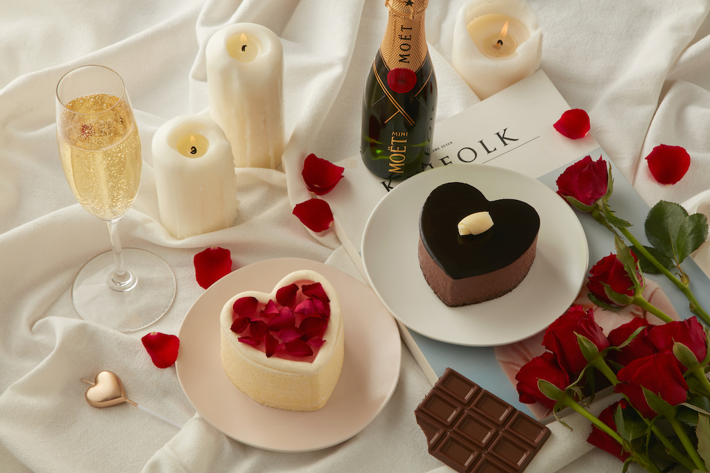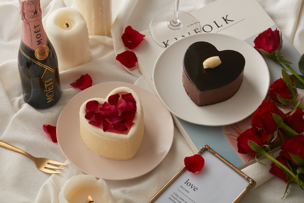 ▼預購組合升級隱藏版 Moët Rose 香檳,夢幻唯美的粉色酒液,更添浪漫情調,8月11日起至8月17日可至官網預購,並於8月22日至8月25日開放至台北旗艦店門市領取。另外四間門市也有提供限量情人節限定組合供購買,內用組合:愛心玫瑰千層蛋糕*1+愛心皇冠巧克力蛋糕*1 + Moët Brut 香檳 200ml*1+愛心蠟燭*1,售價 1,799 元 (服務費另計,限台北旗艦店、遠百信義店。);外帶組合:愛心玫瑰千層蛋糕*1+ 愛心皇冠巧克力蛋糕*1 + Moët Brut 香檳 200ml*1+牛津布保冷袋*1+愛心蠟 燭*1,售價 2,020 元 (四家門市皆可購買,每人限購一組)。